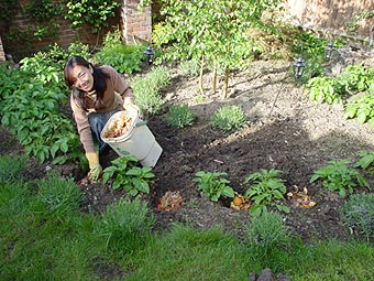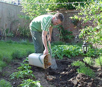 with digging into vegetable beds, flower beds, plant pots and around roots.
